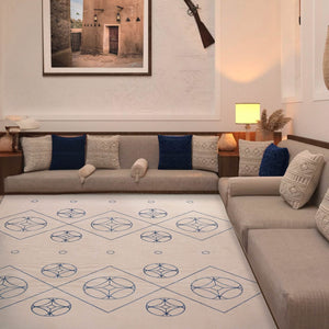 سجادة "دروازة نجدية" بخلفية بيج ونقوش متناسقة تضيف لمسة من الأناقة والدفء، مثالية للمساحات العصرية والفاخرة.