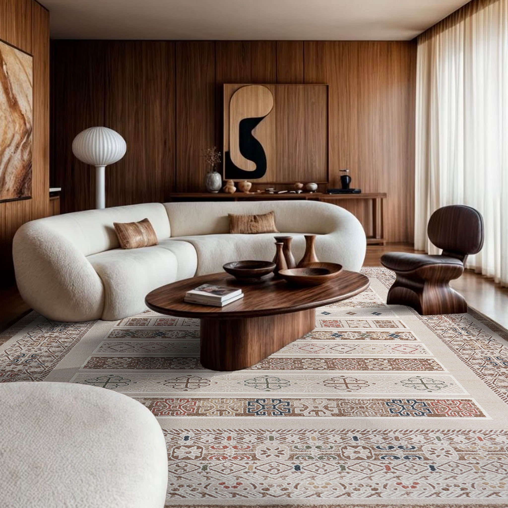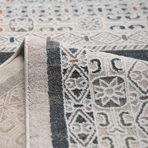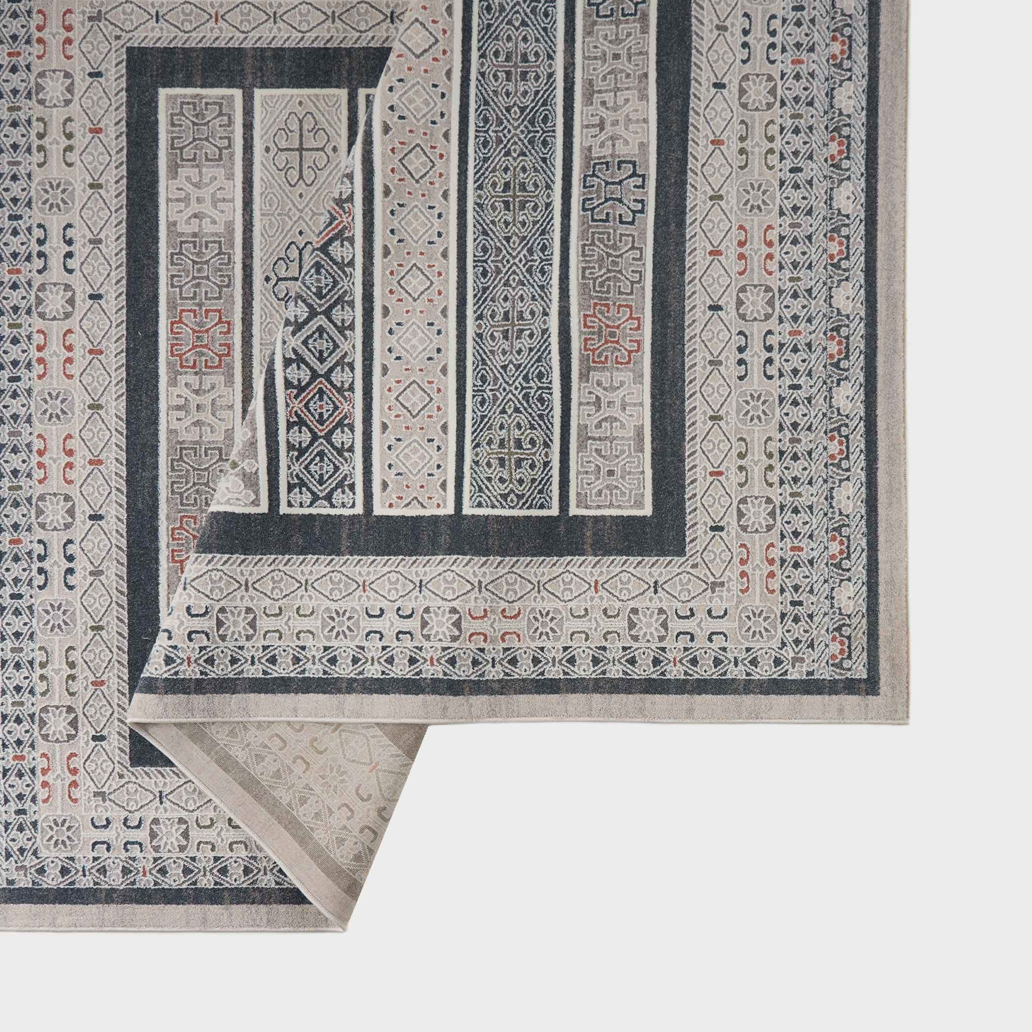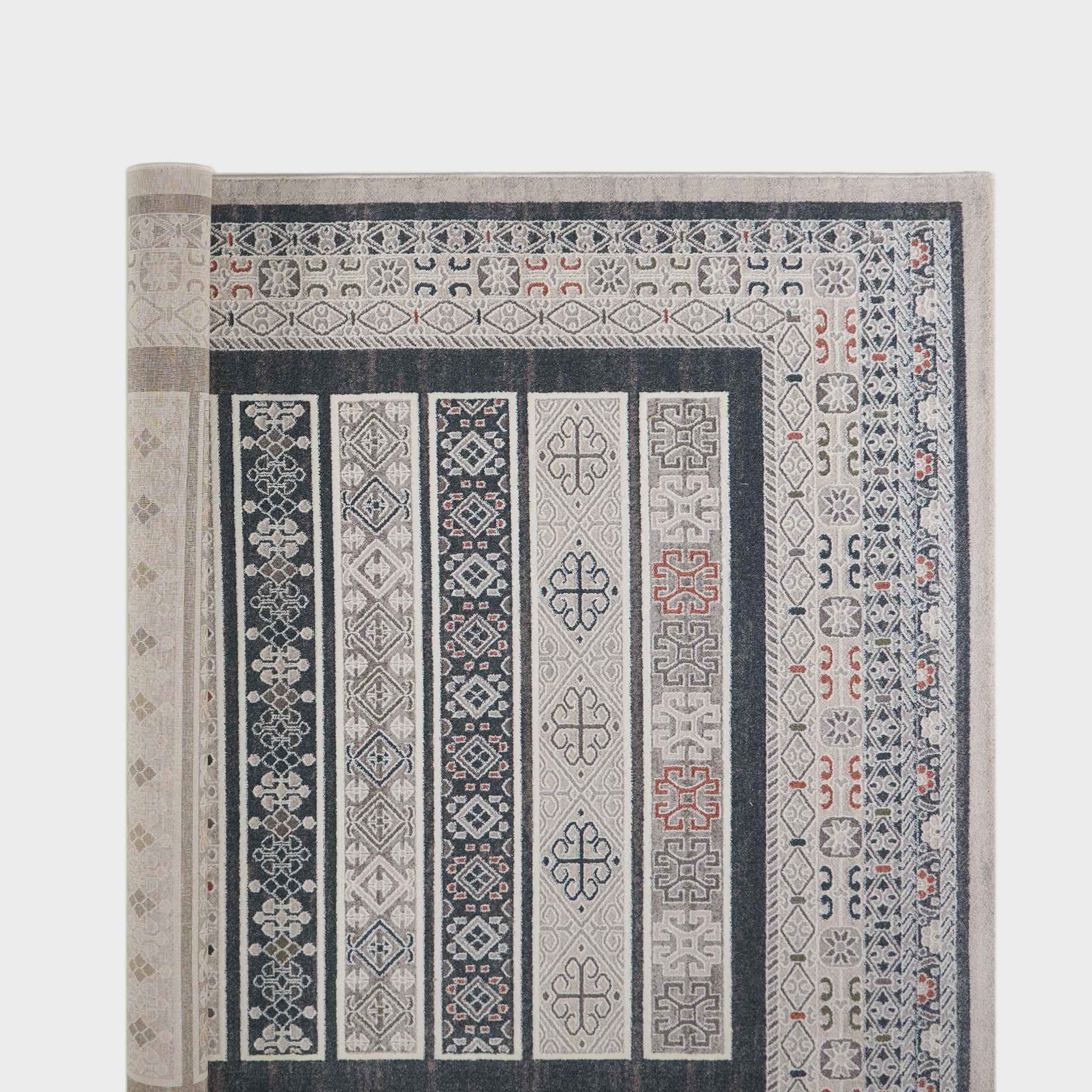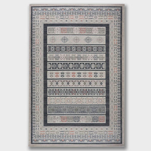 "Rafeef" rug with a modern elegant design and soft geometric patterns, adding a touch of luxury and calm to any space.