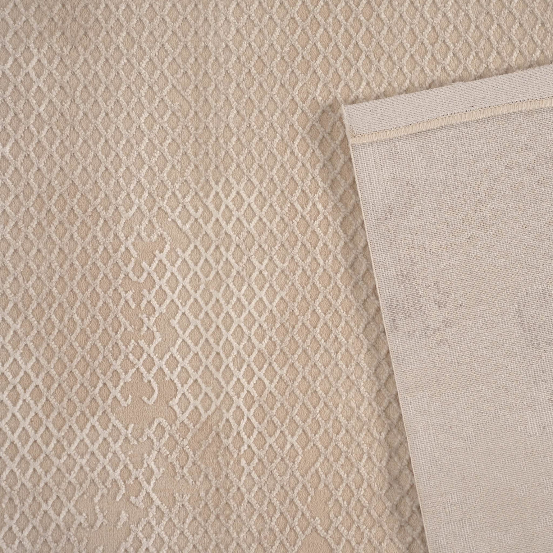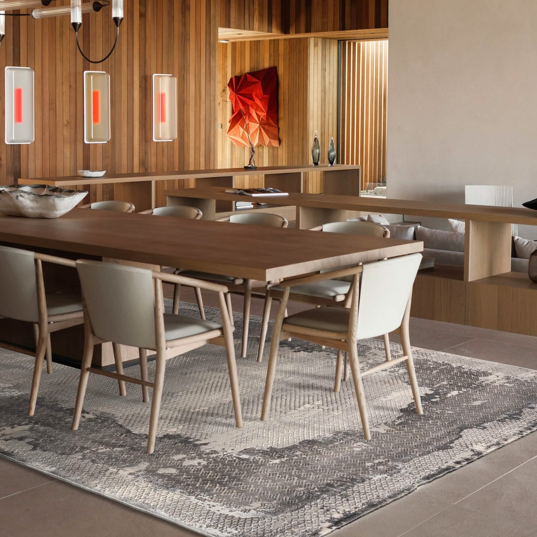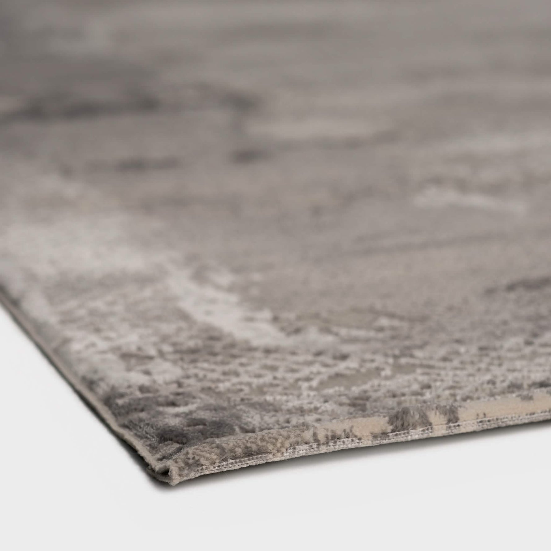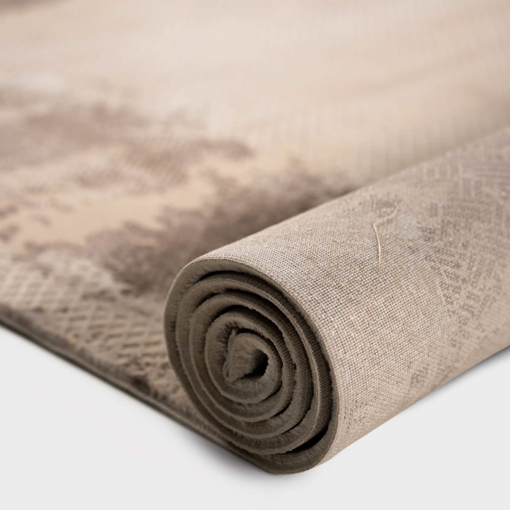 "Adaly" rug in beige and gray tones with subtle patterns, adding warmth and flow, perfect for calm and modern interior designs.