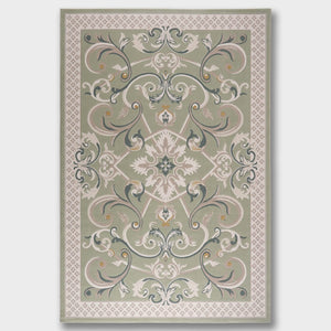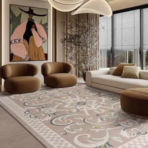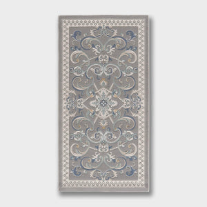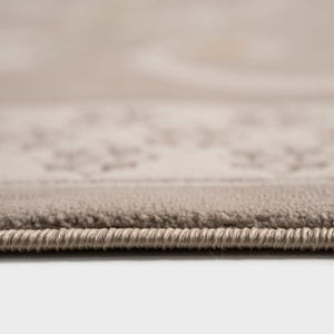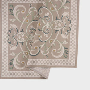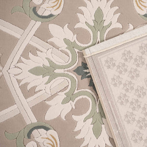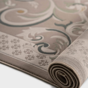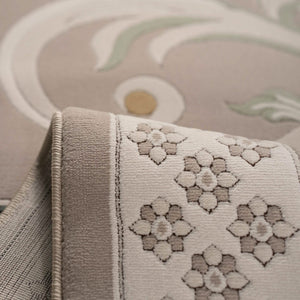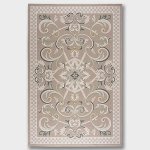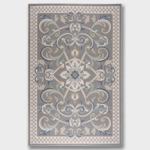 Cannes rug with a classic pattern and French motifs in various colors such as beige, gray, blue, and brown, adding elegance, and luxury to your living room.