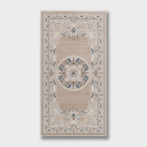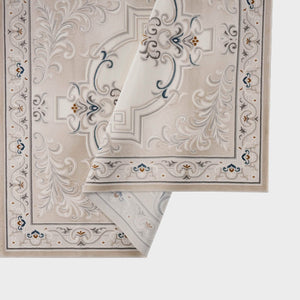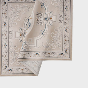 Chamonix Rug features an elegant French design, crafted from high-quality polyester and polypropylene. Available in beige, brown, gray, and blue, it adds warmth and refined elegance to any room with a soft classic touch.