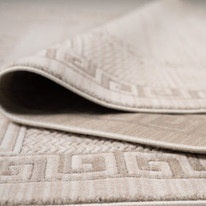 Dijon classic rug in calm beige, with a refined timeless design that brings warmth and harmony to any room, made of durable soft polyester.