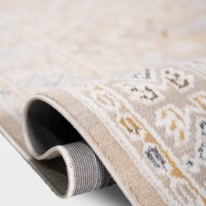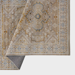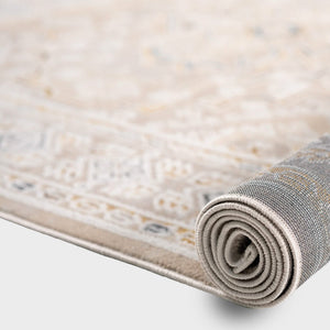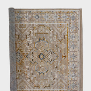 "Khwater" rug with soft colors and harmonious patterns, adding warmth and calm, an elegant design that brings grace and beauty to any space.