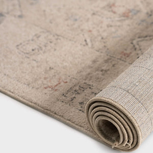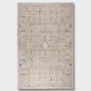 Leawra rug in soft beige with a classic pattern, elegantly enhancing your home and adding refined warmth to any space.
