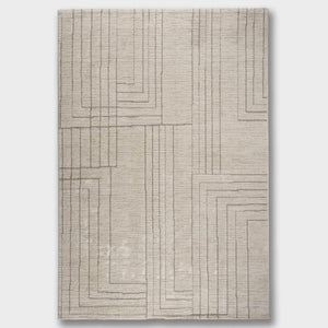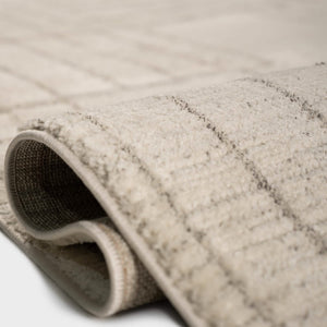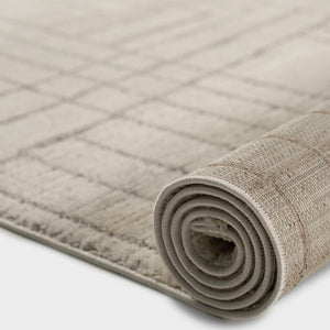 Linz rug in soft gray with a Bohemian pattern, adding a comfortable modern touch and an elegant look that complements any home décor.