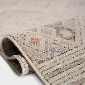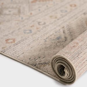 Mara rug in beige with an elegant Sadu pattern, bringing warmth and a charming natural touch to your space.