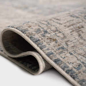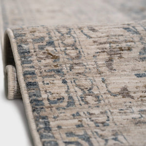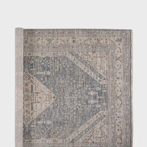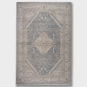 Siena rug features an elegant classic design in a serene Cyan hue, exuding luxury and adding a touch of quiet sophistication to your space.