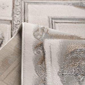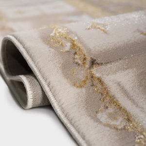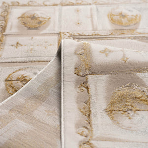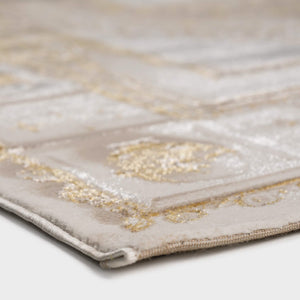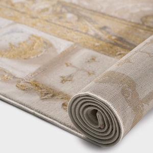 Wasal classic rug in gold, gray tones, offering an elegant design that brings warmth and timeless charm to any space, crafted from quality polyester.
