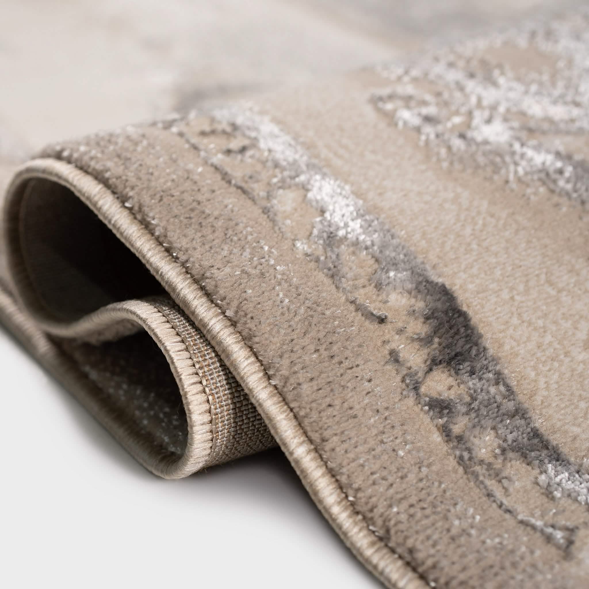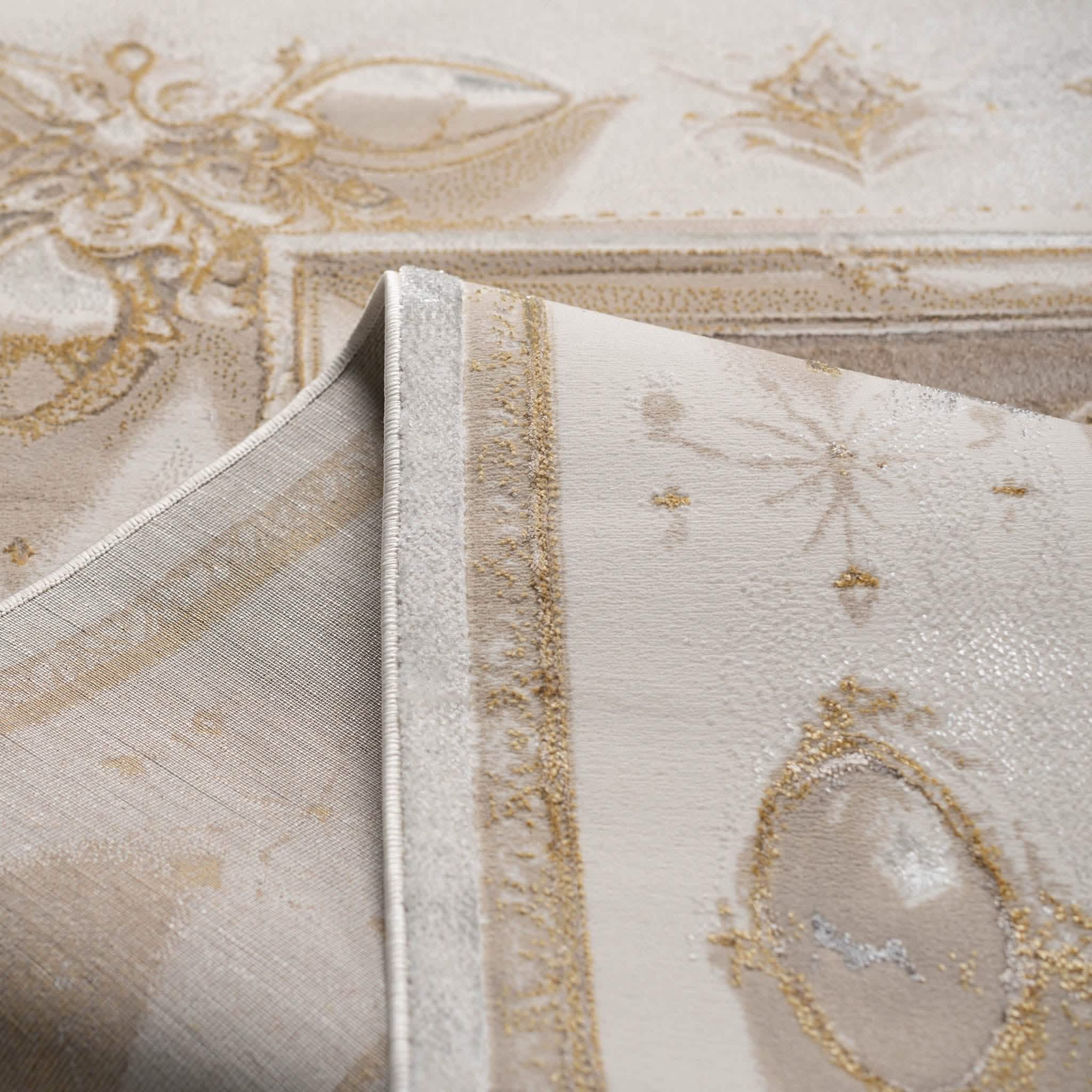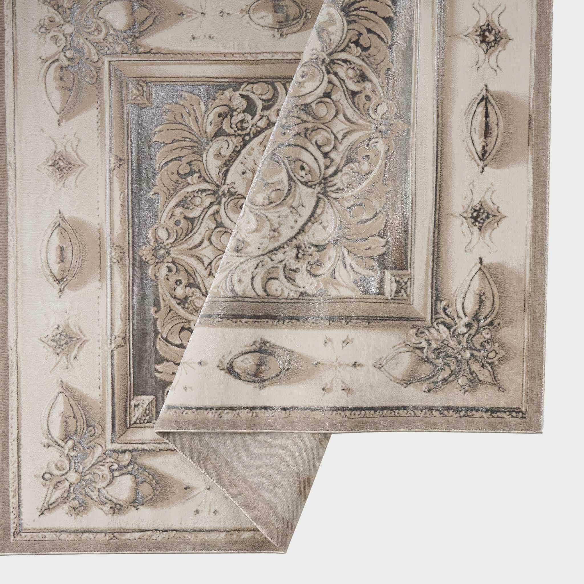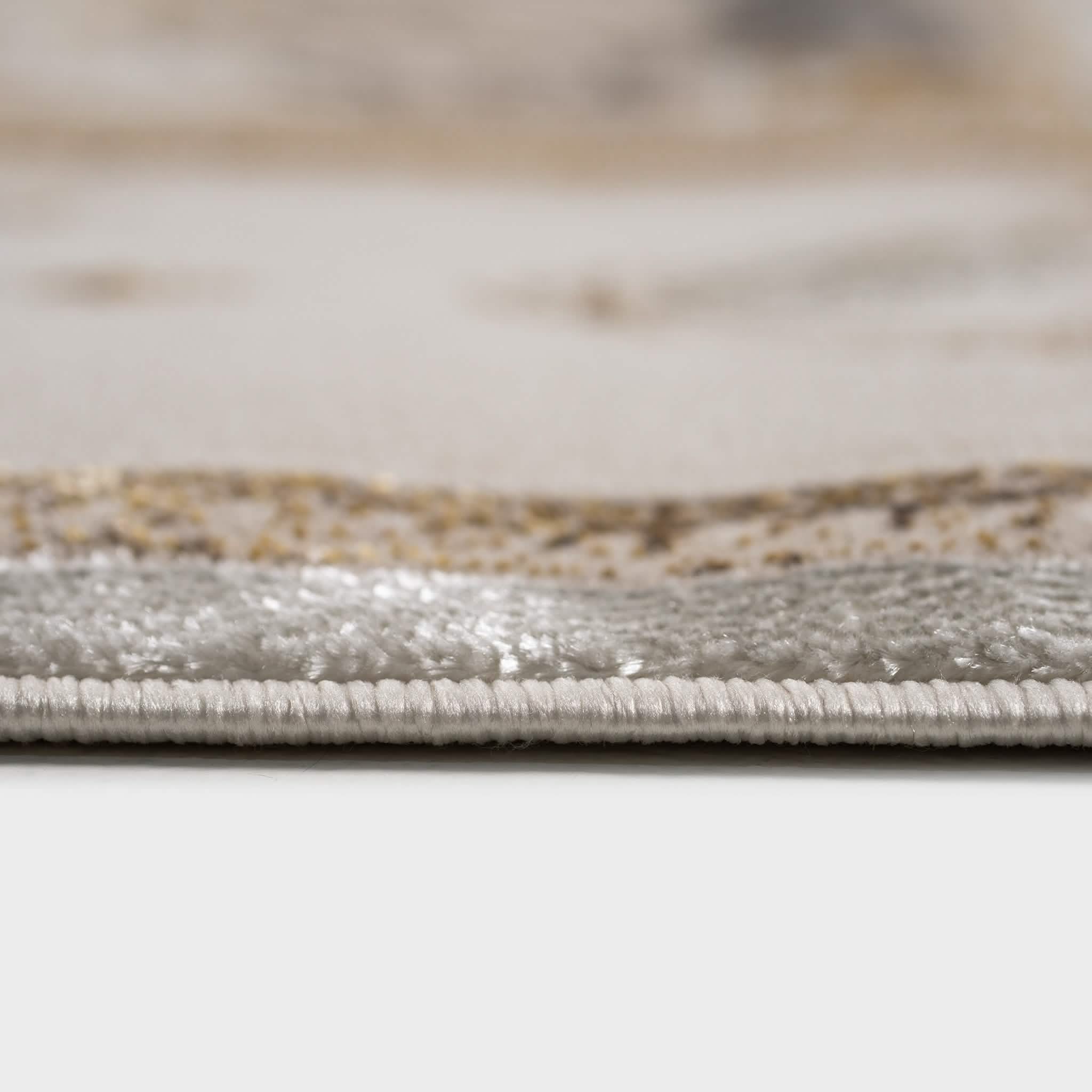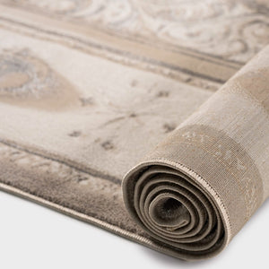 سجادة مجدولين بتصميم كلاسيكي أنيق بألوان رمادي وذهبي، تضيف لمسة فخمة ودفء لغرفة المعيشة أو المجلس، مصنوعة بجودة عالية ومقاسات متنوعة تناسب كل مساحة.