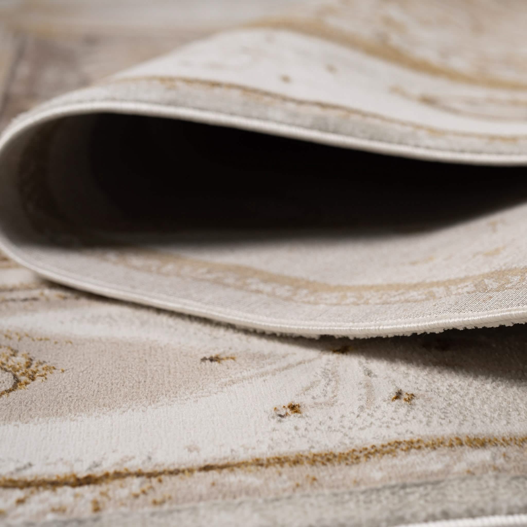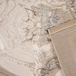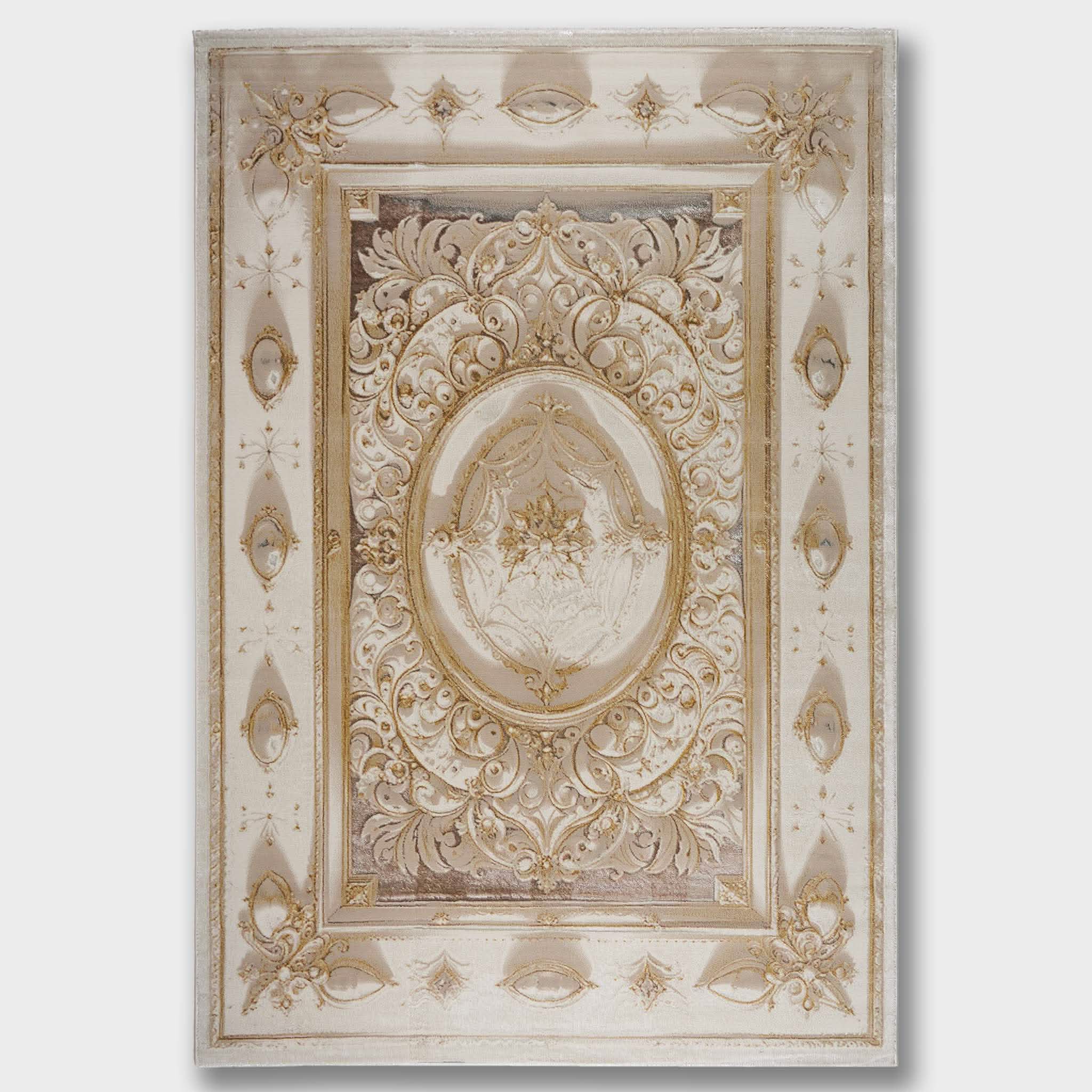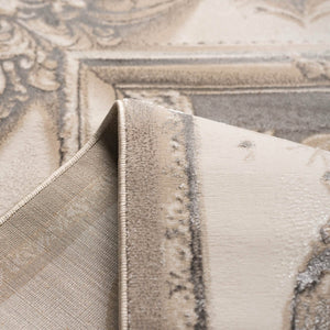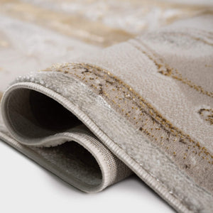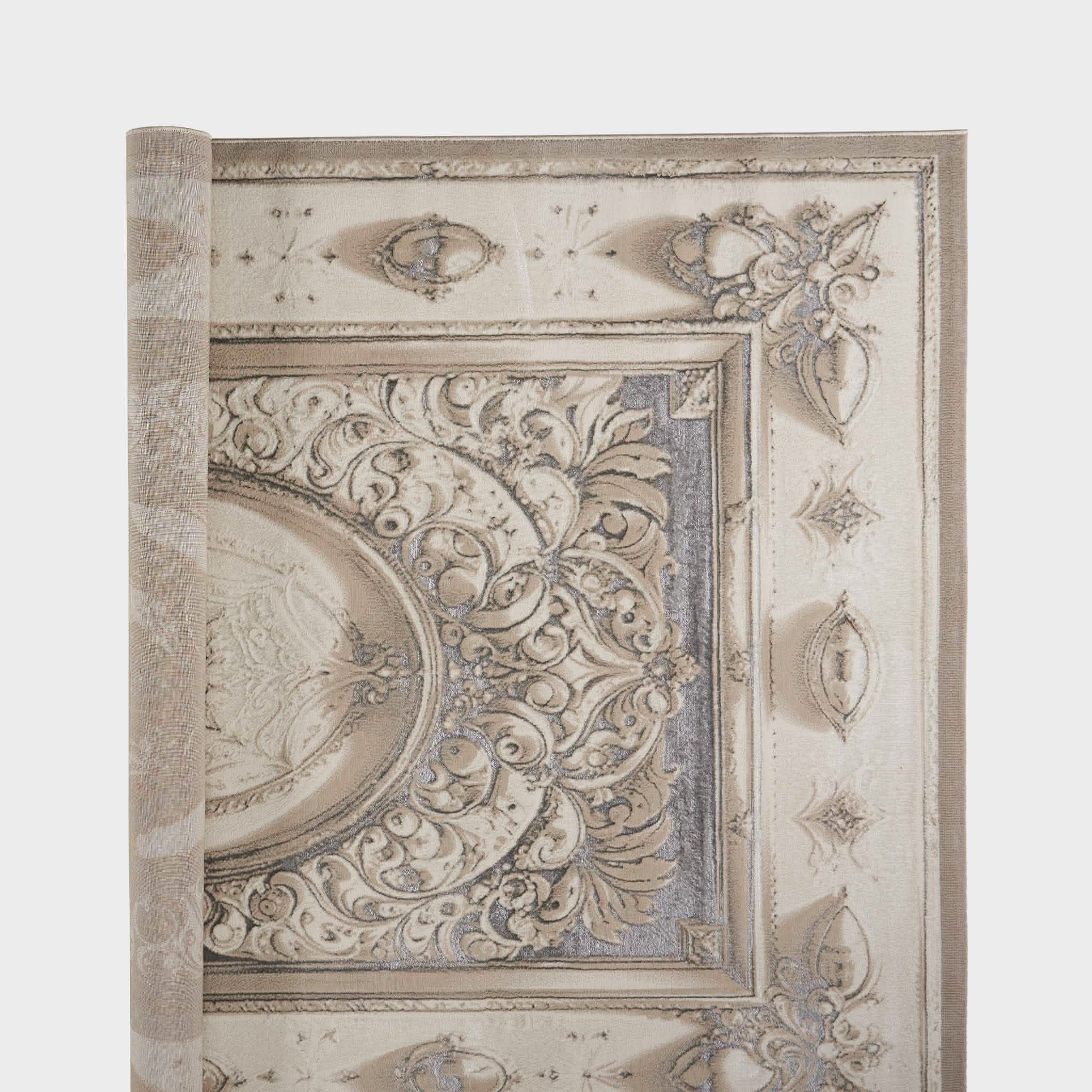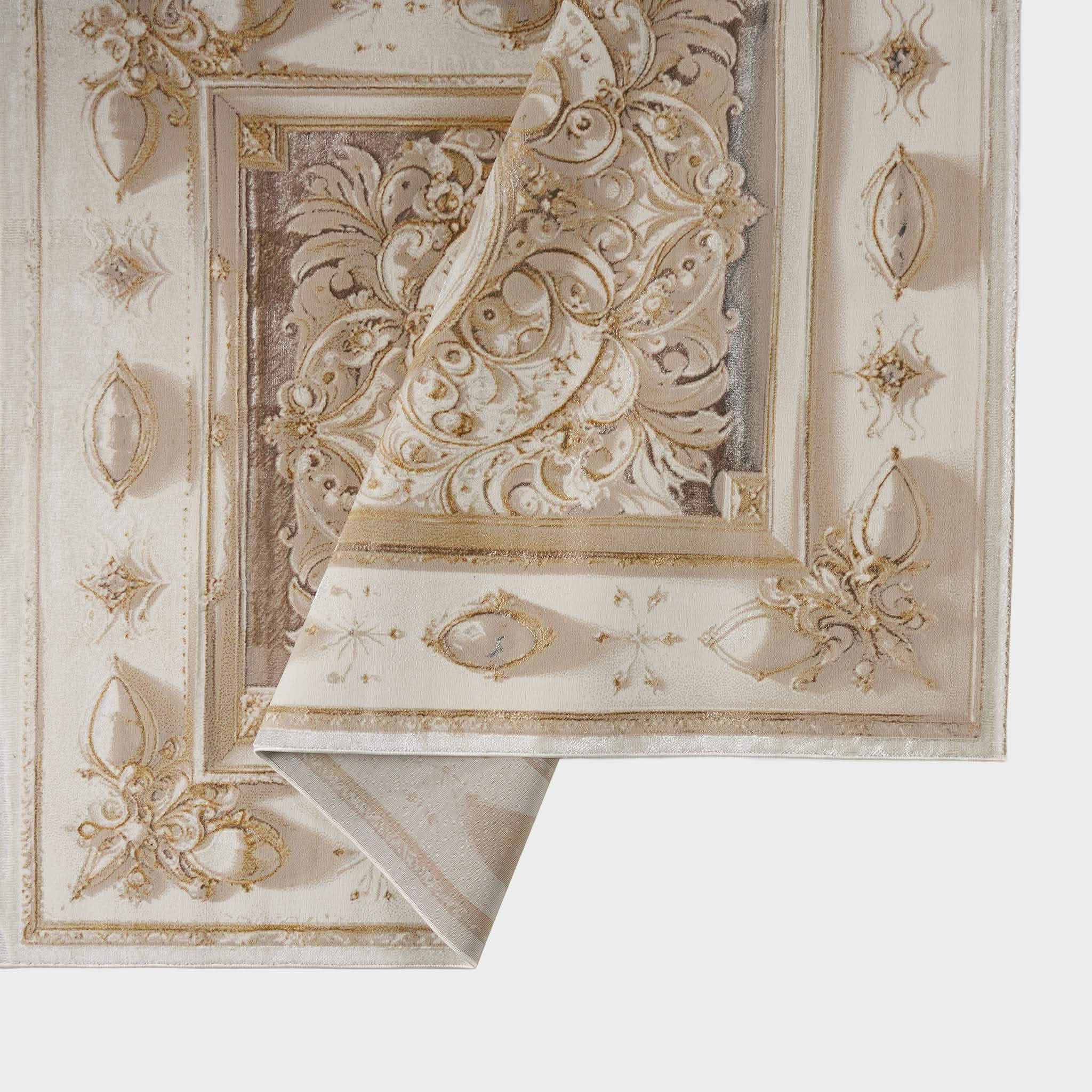 سجادة مجدولين بتصميم كلاسيكي أنيق بألوان رمادي وذهبي، تضيف لمسة فخمة ودفء لغرفة المعيشة أو المجلس، مصنوعة بجودة عالية ومقاسات متنوعة تناسب كل مساحة.