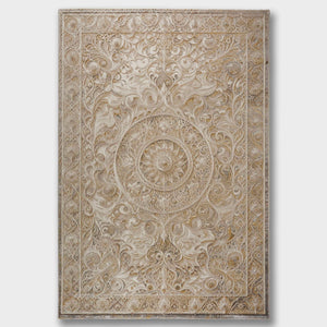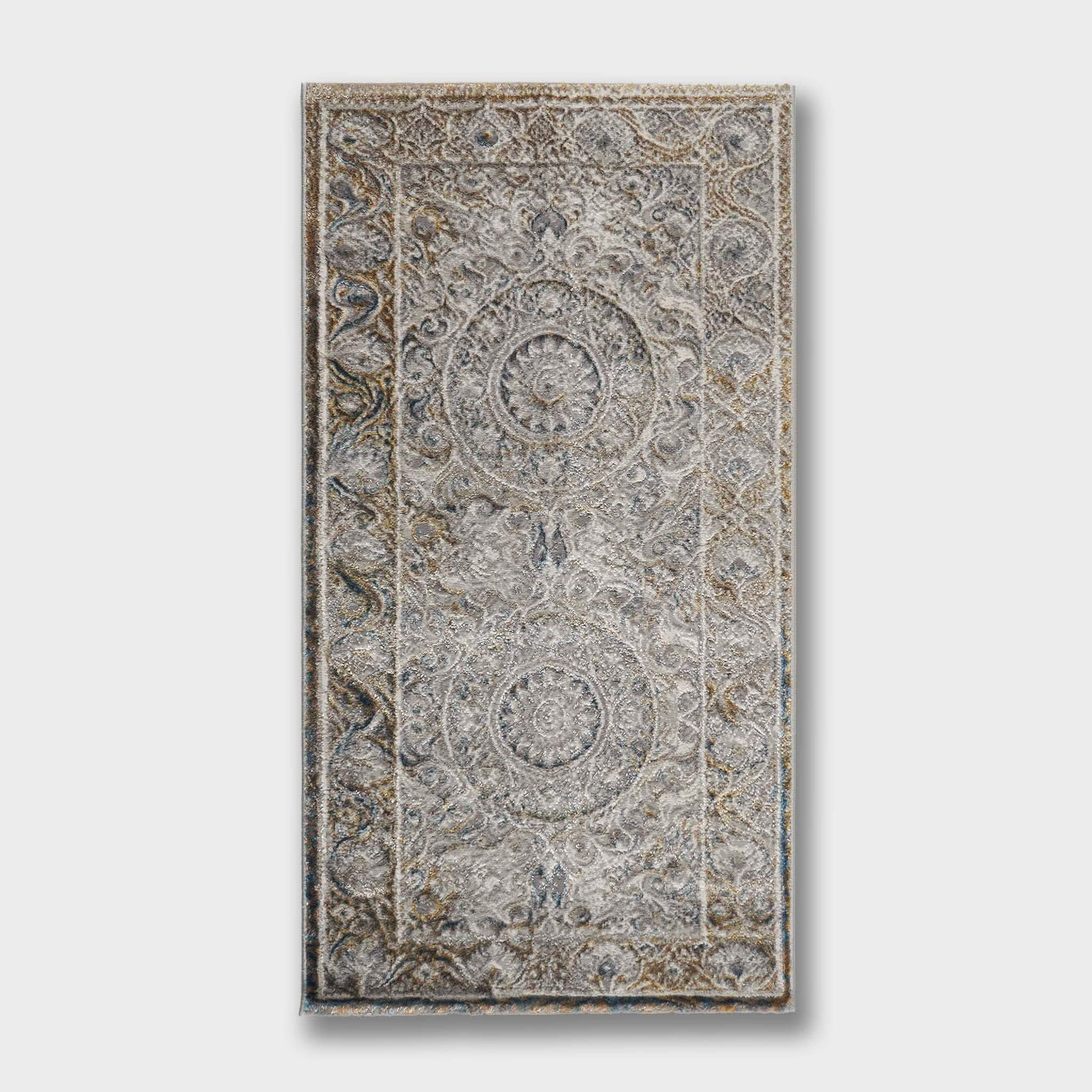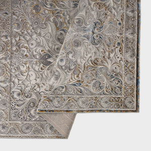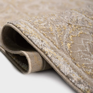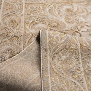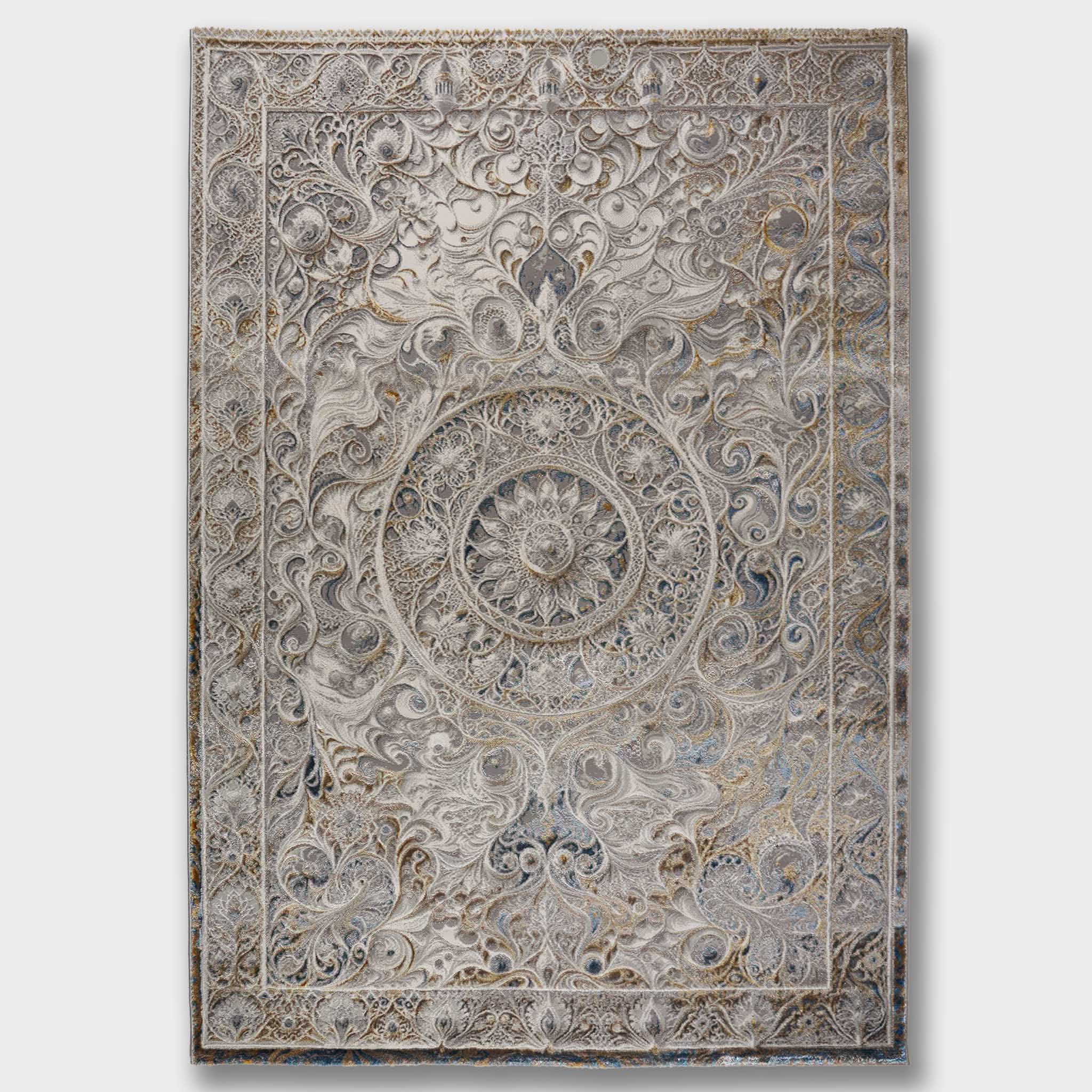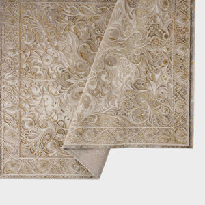 سجادة نرجس بتصميم كلاسيكي أنيق بألوان بني ورمادي هادئة، تضفي لمسة دفء وفخامة على غرفة الجلوس أو المجلس، بجودة عالية ومقاسات متعددة تناسب كل المساحات.