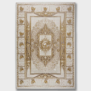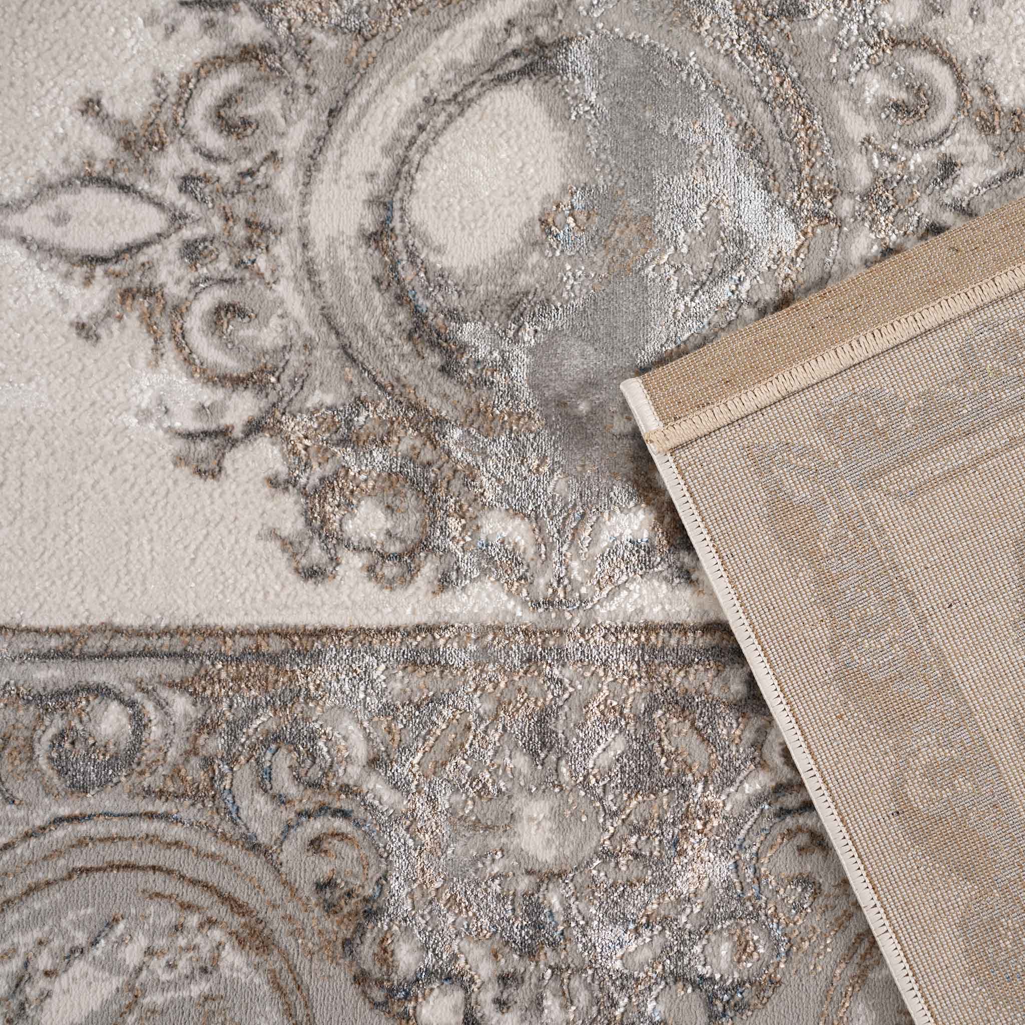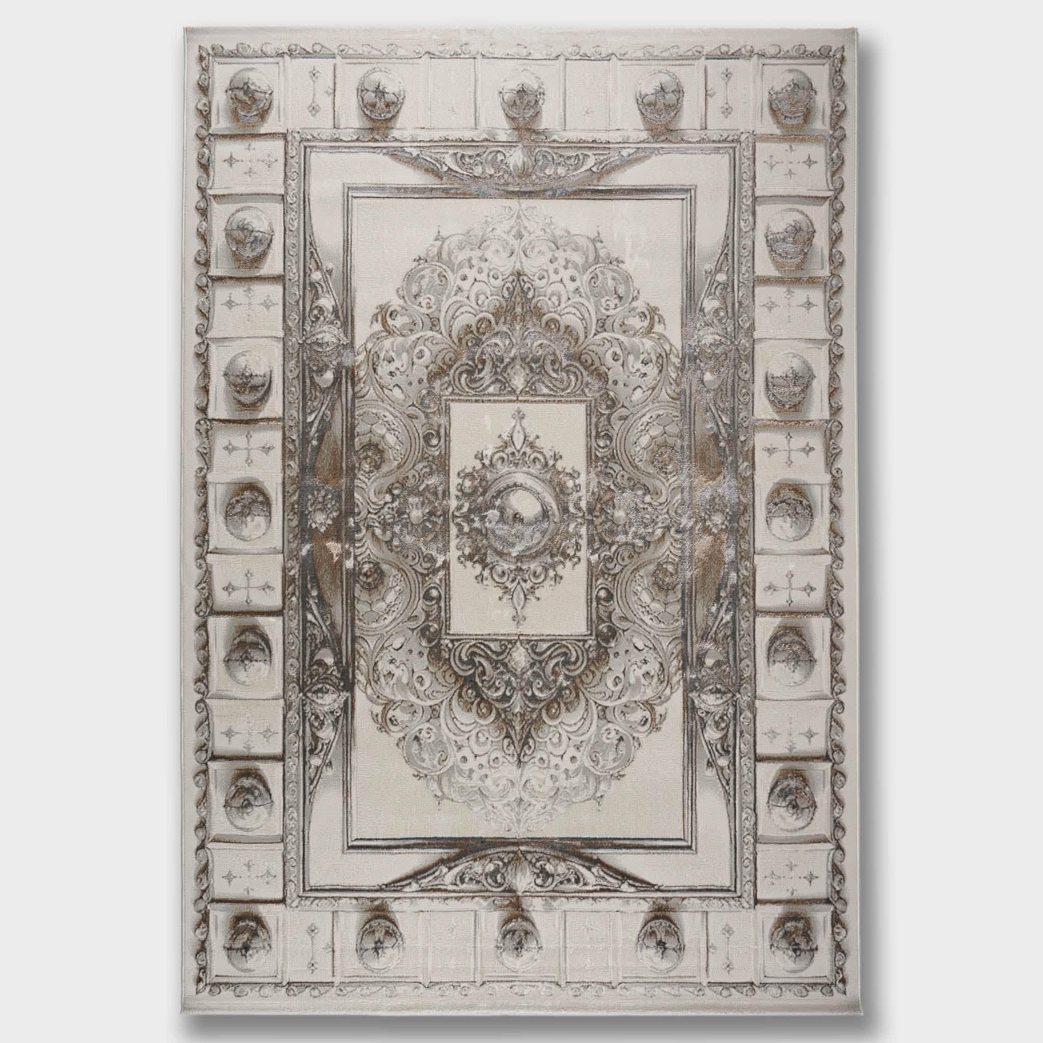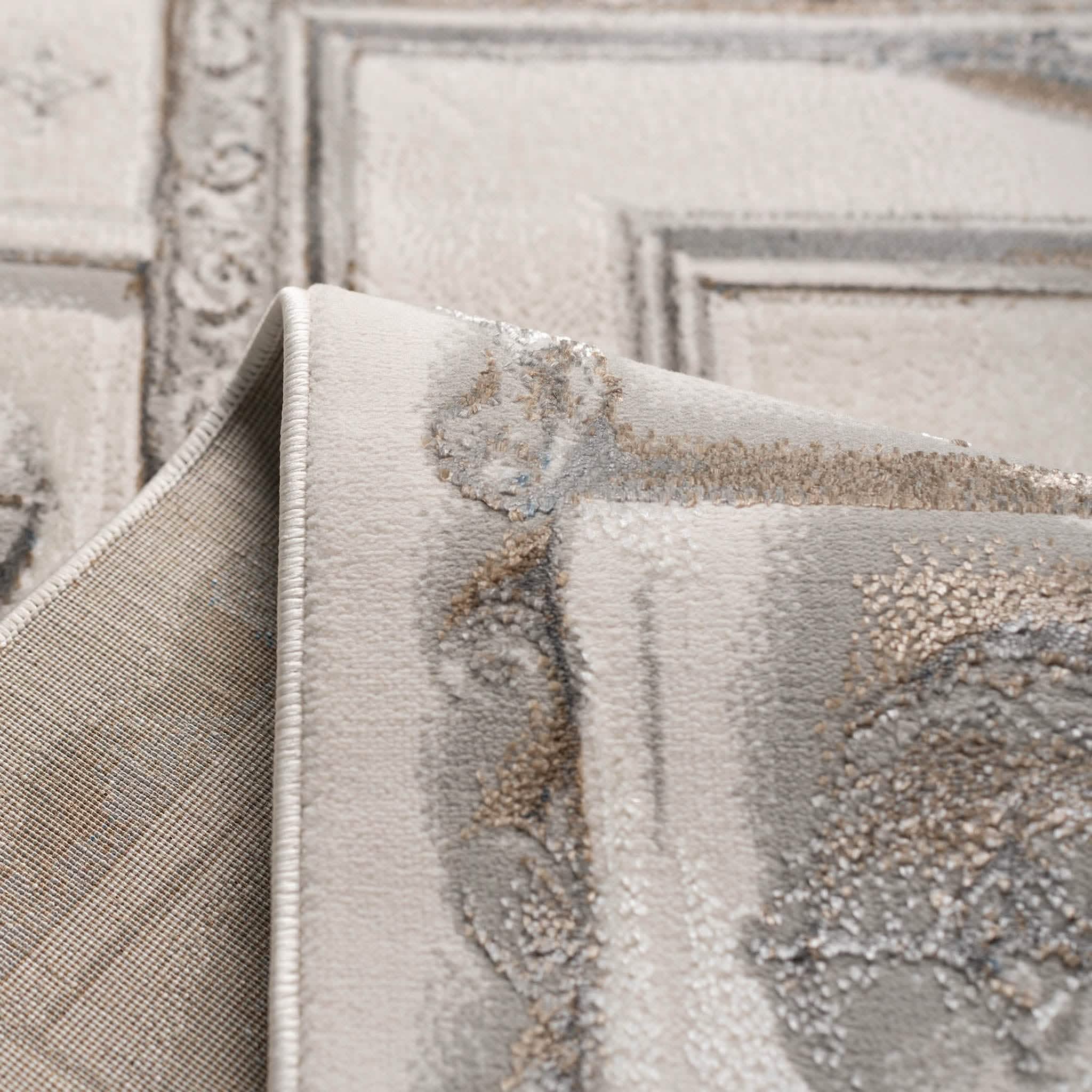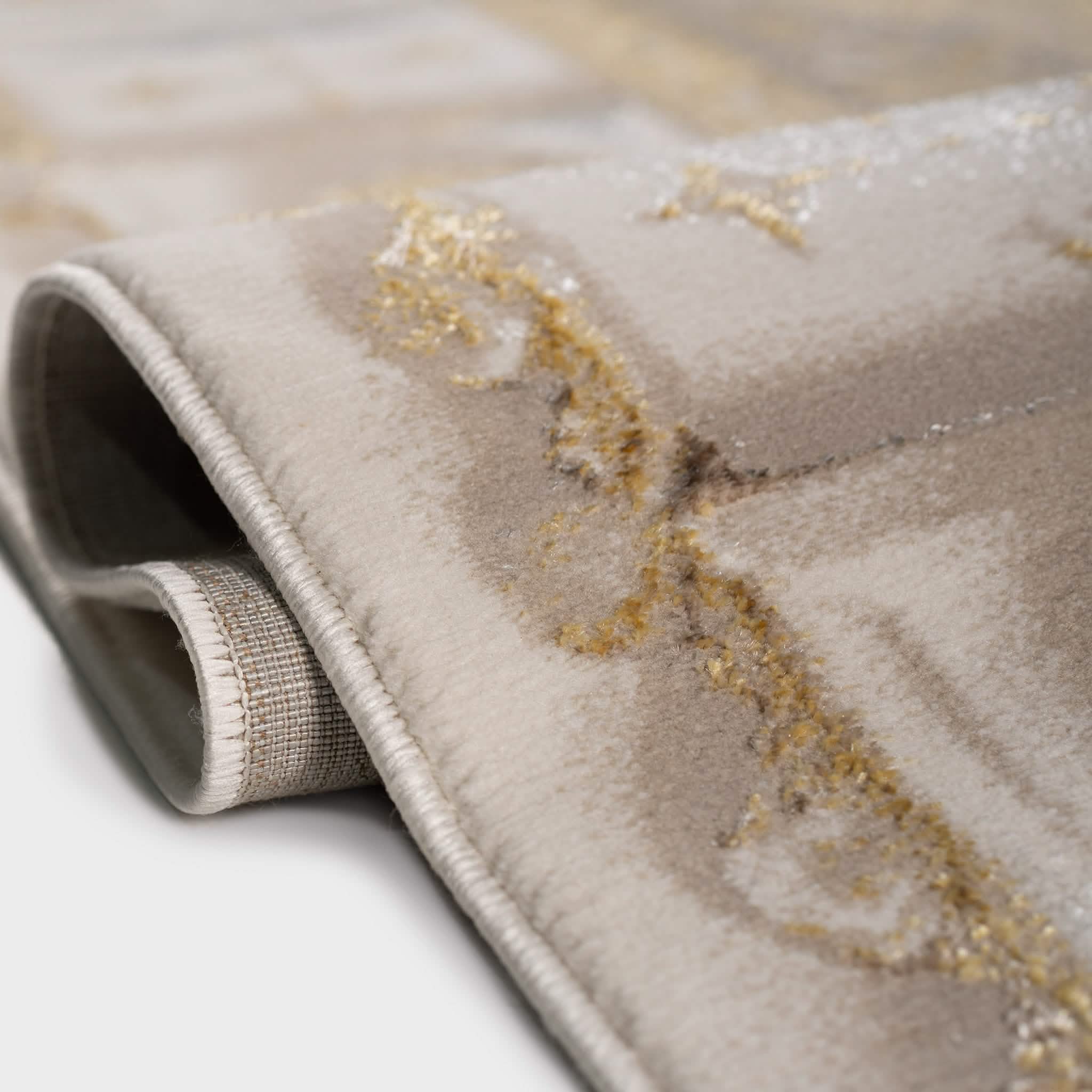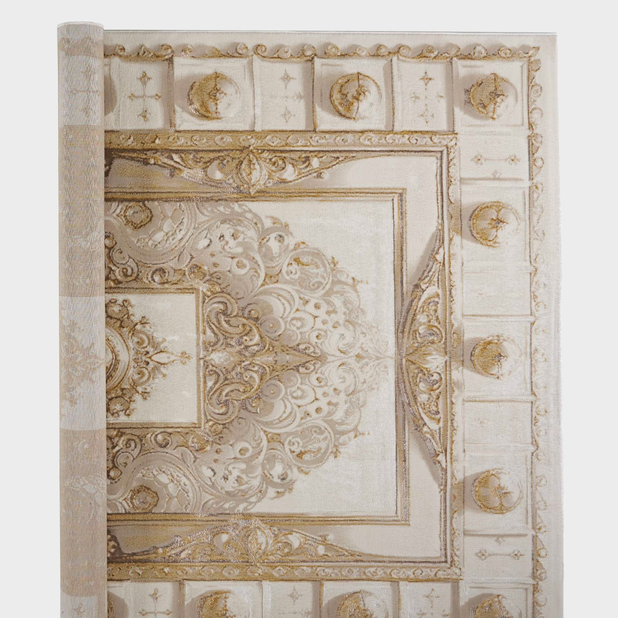 سجادة وصال كلاسيك بألوان ذهبي ورمادي، تصميم أنيق يضيف دفئًا وفخامة وتناسقًا لأي غرفة، خامة بوليستر عالية الجودة.